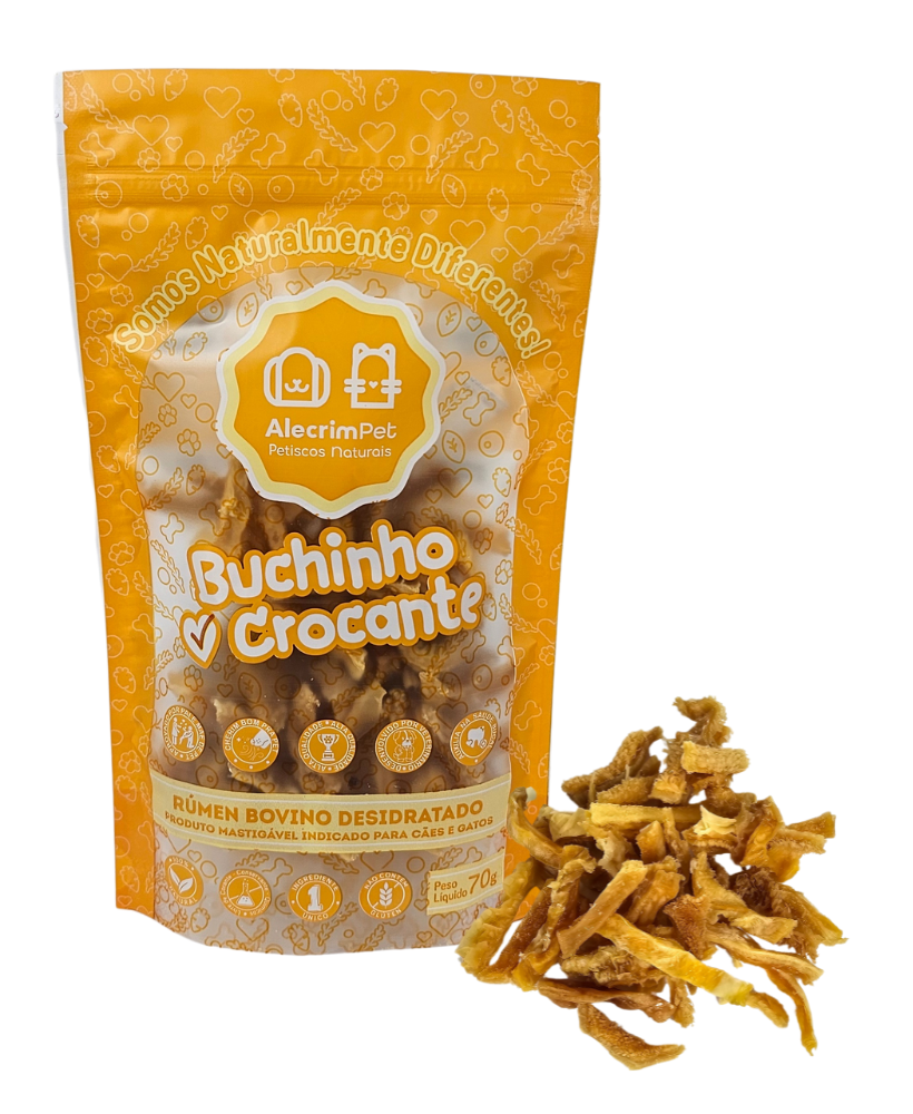O Buchinho Crocante é um petisco cuidadosamente desenvolvido para oferecer sabor e diversão. Depois de desidratado se torna altamente crocante com aroma apetitoso.